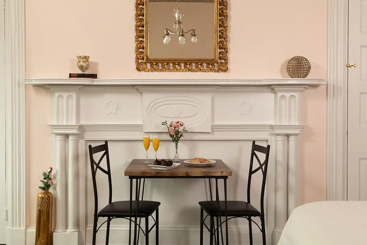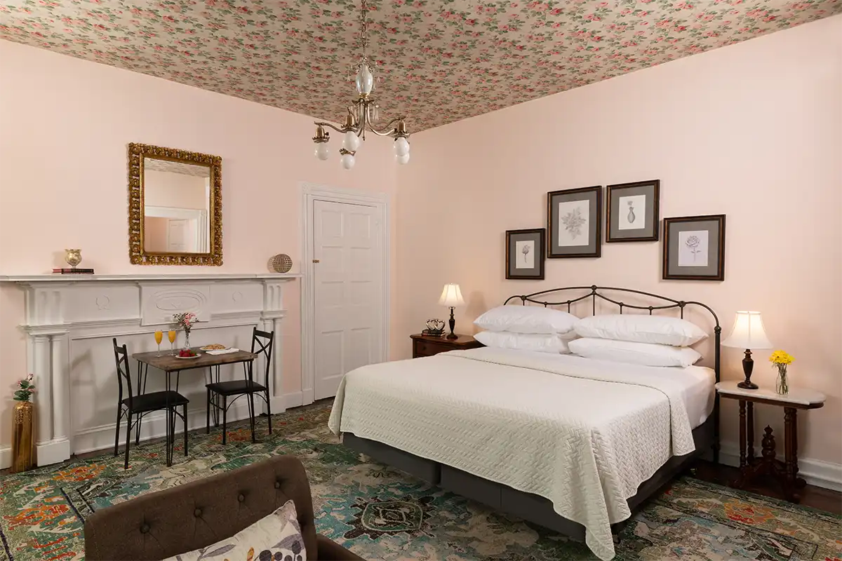 A sitting area with wired and wireless connection makes this large and friendly room ideal for the romantic traveler.